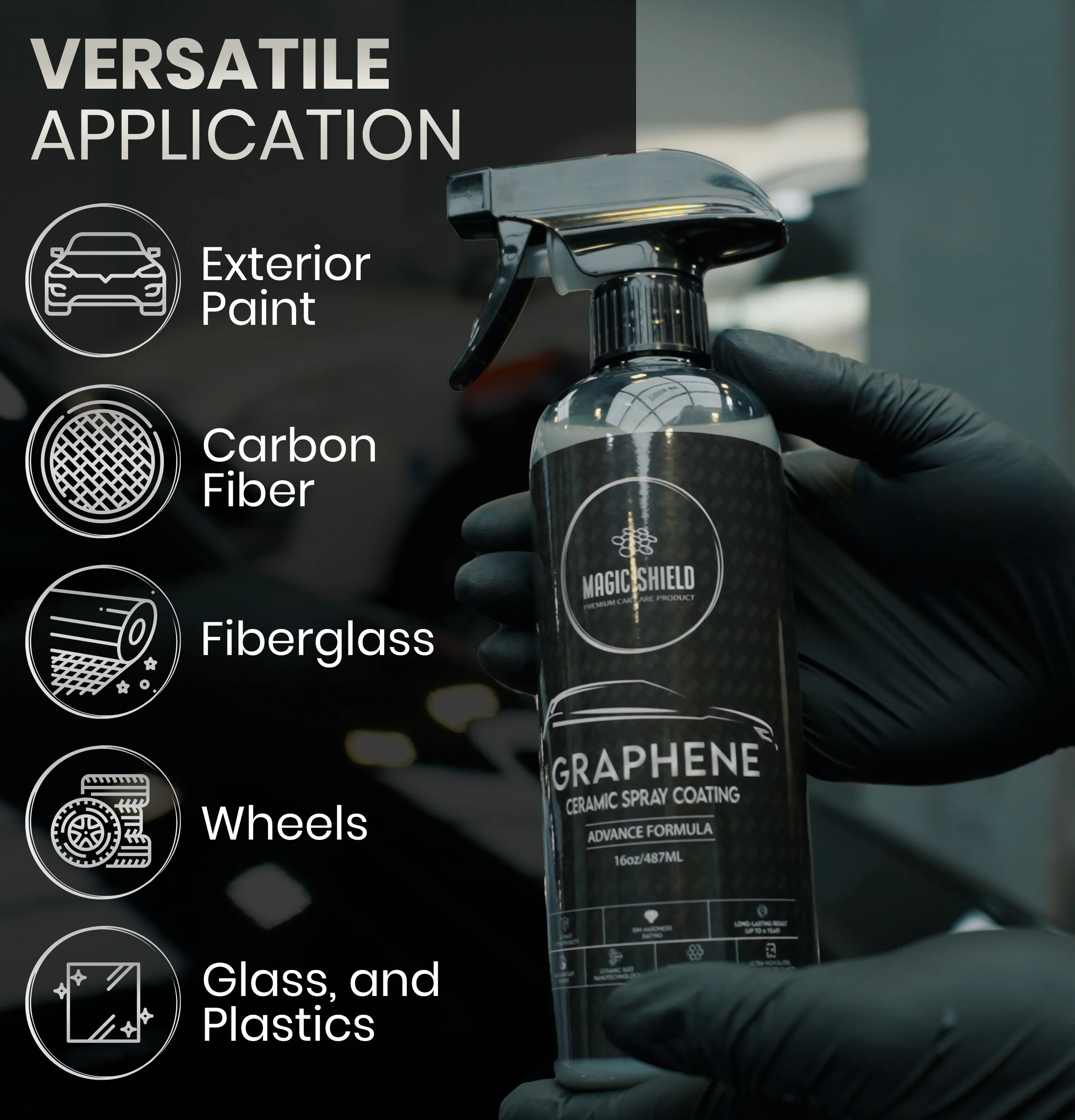 One Formula. Endless Applications. From paint to plastic, chrome to wheels — Magic Shield adapts to every surface. No guesswork, just flawless protection wherever you need it.